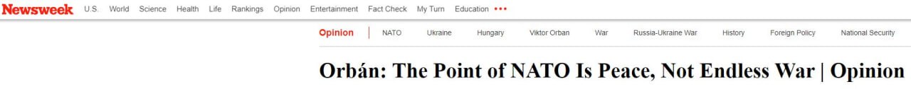 Страны НАТО, кажется, с каждым днём всё больше отдаляются от изначального концепта альянса — блока, который должен поддерживать мир. Однако вместе с этим они забывают и тот факт, что все великие империи погибали не от рук врагов, а по собственной вине. Так же и в случае с НАТО: «Если мы выберем конфликт вместо сотрудничества, войну вместо мира, то совершим самоубийство», — такое мнение в своей статье для Newsweek высказал премьер-министр Венгрии Виктор Орбан.