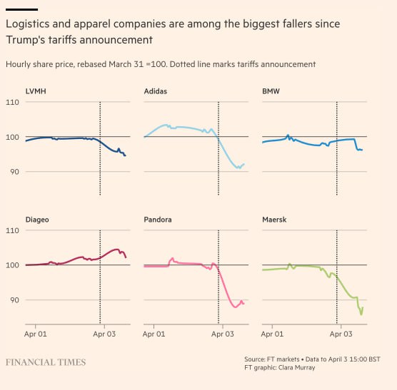 ⚫️ Ритейл — пошлины до 49% на товары из Вьетнама и Камбоджи ударят по Nike, Adidas, H&M, Pandora, Shein и Temu. Беспошлинный импорт для них отменяется.
