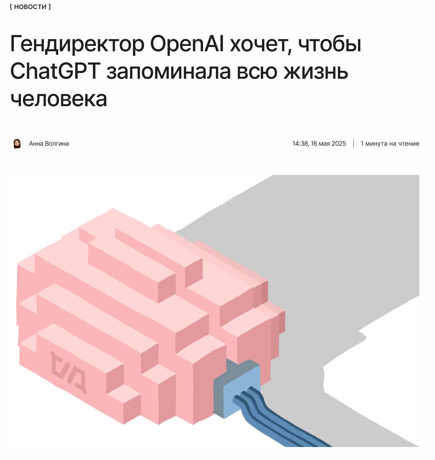 Сэм Альтман хочет, чтобы ChatGPT запоминала всю жизнь человека и могла рассуждать в её контексте.