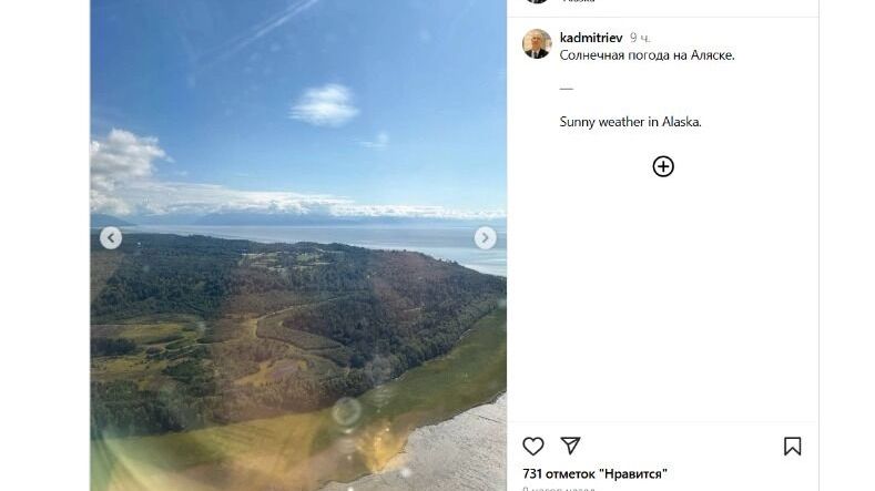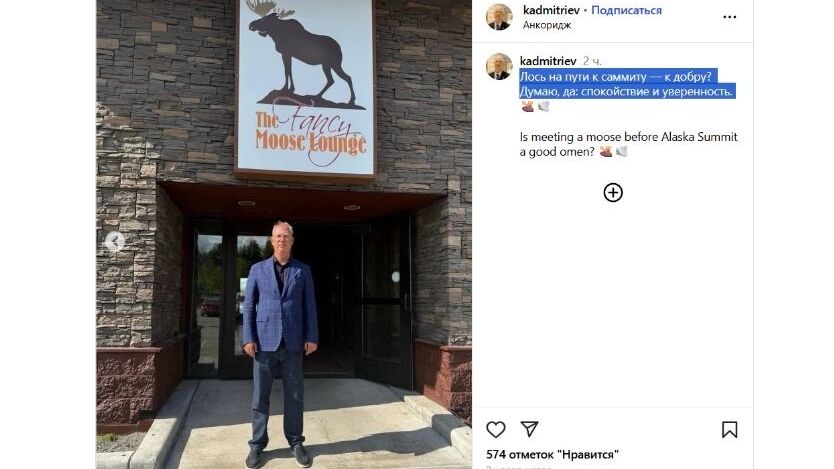 Прибыл на Аляску и спецпредставитель президента России по инвестиционно-экономическому сотрудничеству Кирилл Дмитриев. Политик даже поделился в своих соцсетях фото с местными пейзажами, отметив хорошую, солнечную погоду и разгуливающего у базы любознательного лося.