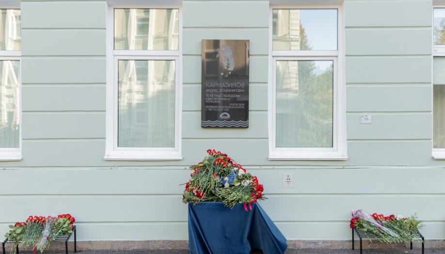 На фото: Мемориальная доска в память о Феликсе Кармазинове.