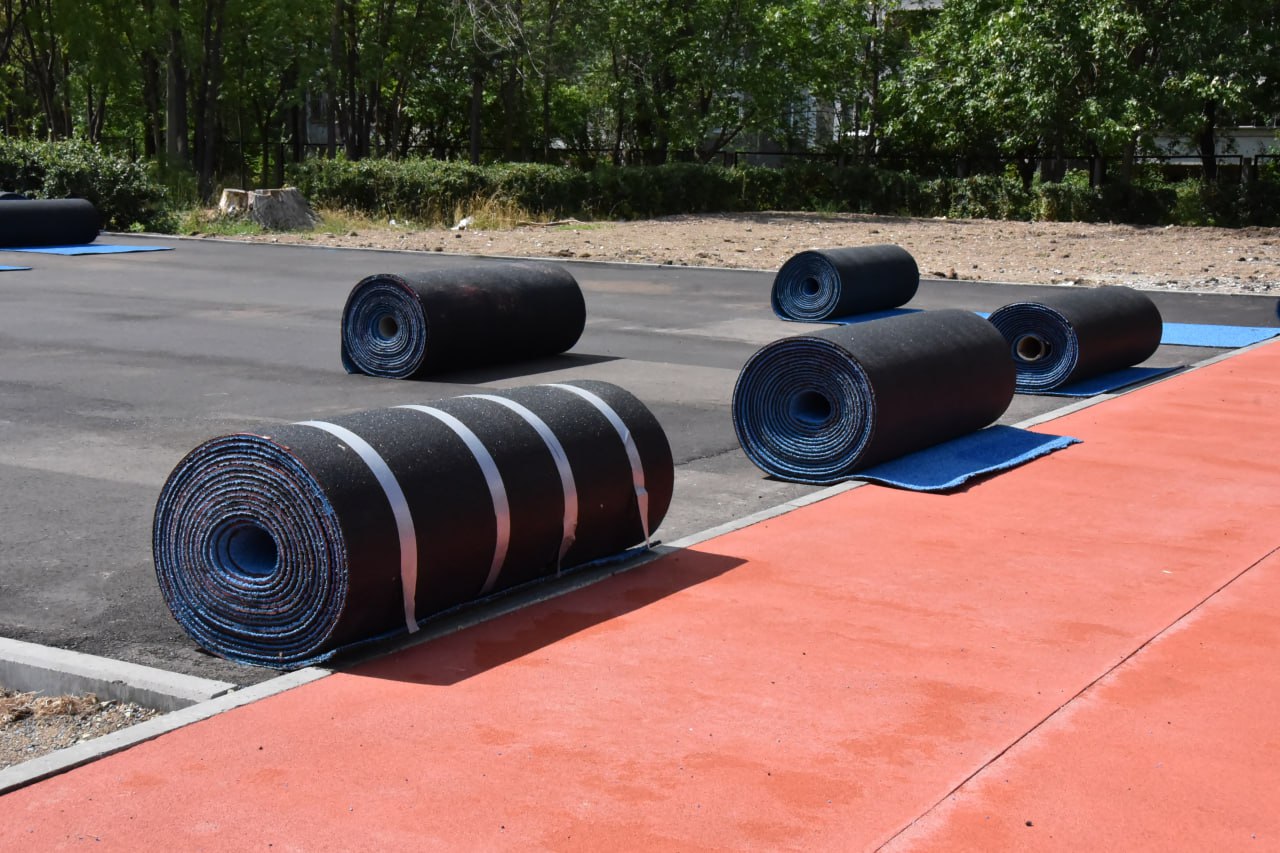 В настоящее время завершается устройство искусственного покрытия для волейбольной и баскетбольной площадок, подрядчик приступил к устройству сетчатого ограждения и беговых дорожек вокруг футбольного поля.