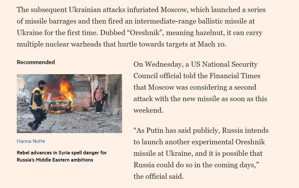 ❗️🇷🇺🪖 Россия нанесёт удар орешником в эти выходные — Financial Times