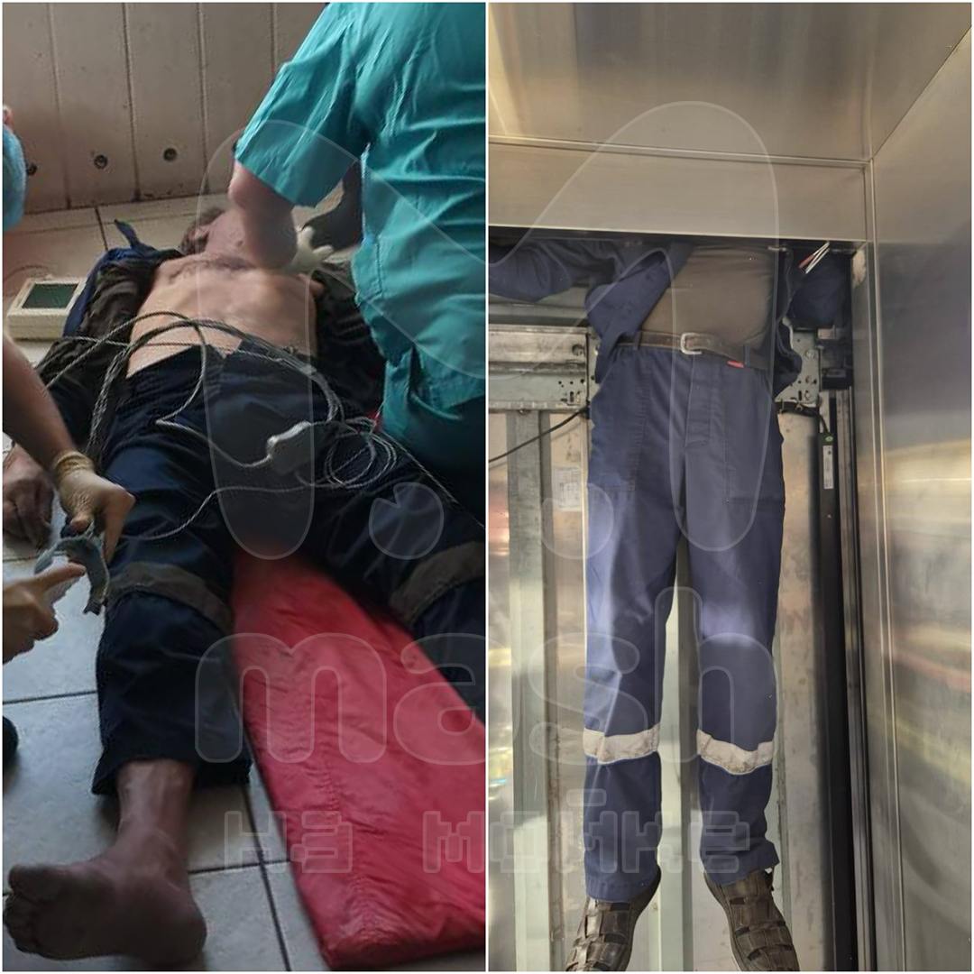 UPD: Врачи не смогли спасти лифтёра — он скончался от полученных травм. По предварительной информации, мужчина задохнулся — конструкция лифта пережала лёгкие.