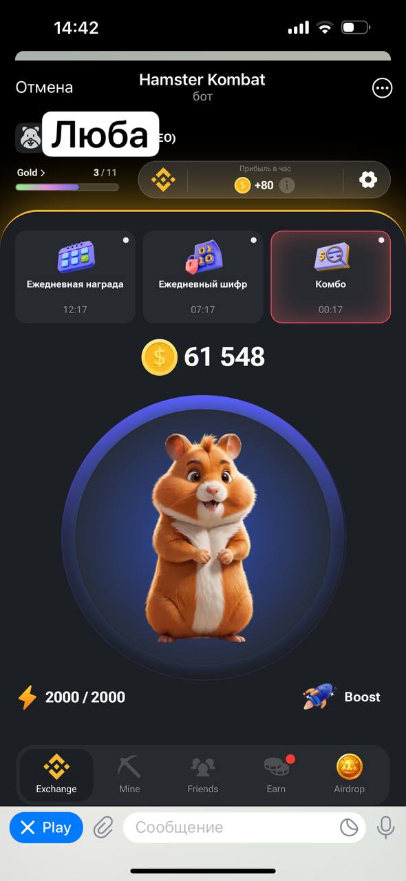 Девочки, фантастические новости приходят сегодня из мира лудоманов: за 20 тысяч монет из игры Hamster Kombat на бирже дают 1000 долларов.