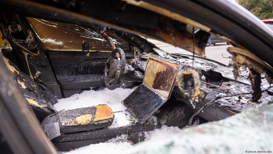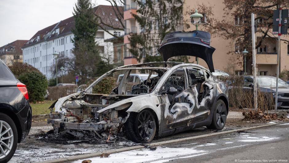 В Берлине сгорели четыре автомобиля Tesla за 30 минут.
