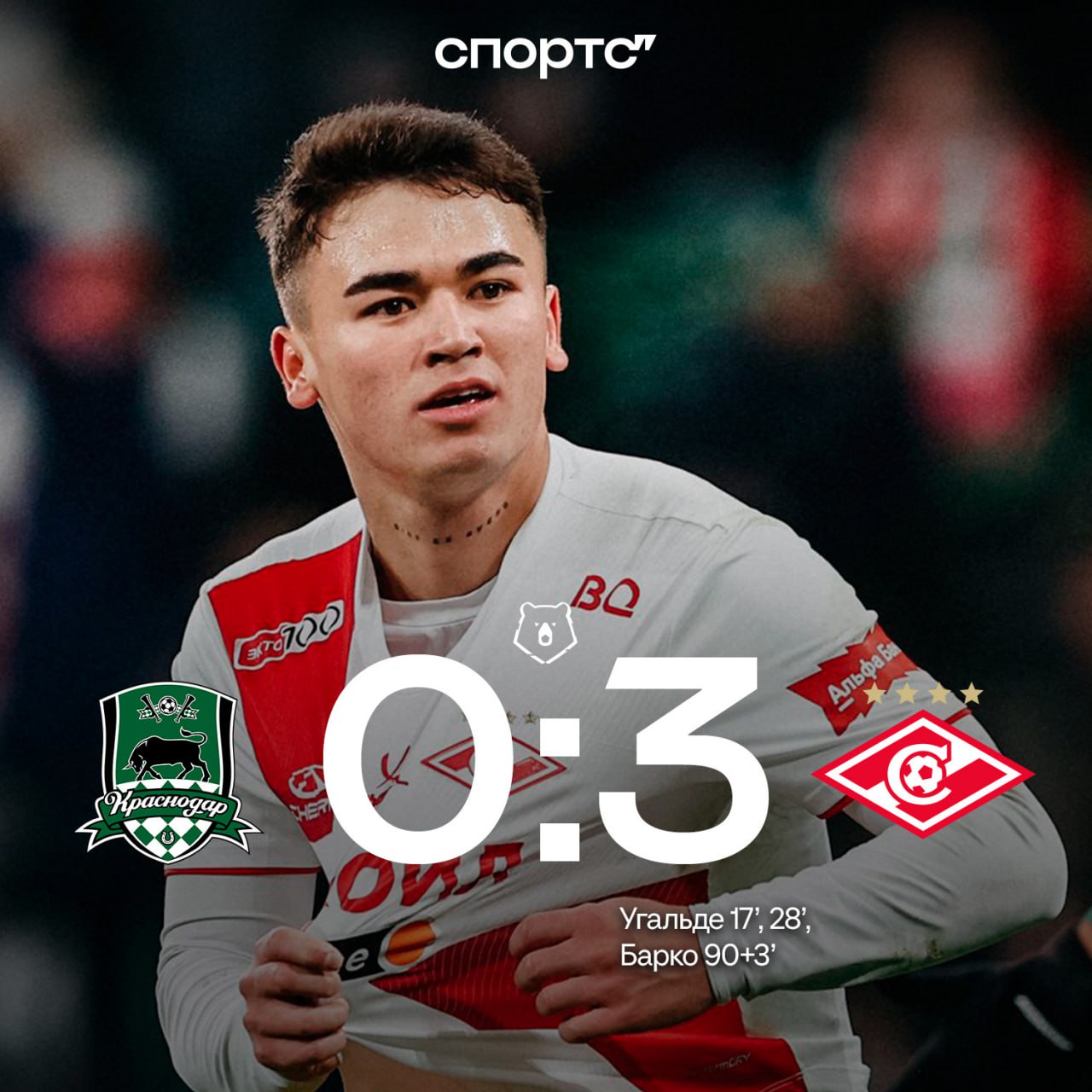 💥 🇷🇺 «Спартак» разгромом прервал 16-матчевую беспроигрышную серию «Краснодара» – дубль у дикого Угальде!