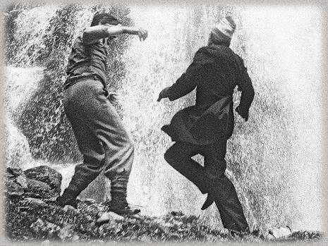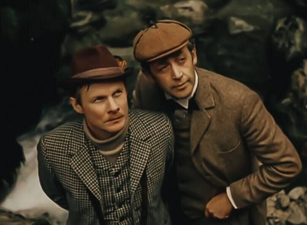 14. Вой собаки Баскервилей - сирена воздушной тревоги. А вовсе не поднимающийся ил или опускающаяся вода :)15. Знаменитый очаг в апартаментах Холмса и Ватсона и дрова в нём - всё сделано из гипса (разумеется, за исключением внешних декораций). Огонь подавался через змеевидную трубку-горелку, подключённую к газовому баллону.16. "Восковая" голова Шерлока Холмса на самом деле тоже из гипса.17. Квартира на Бейкер-стрит строилась на Ленфильме 4 раза.18. За постановку трюков в "Смертельной схватке" (в том числе за эпический бой у Рейхенбахского водопада (на самом деле Гегский водопад в Абхазии)) знаменитый каскадёр Николай Ващилин получил 300 руб.