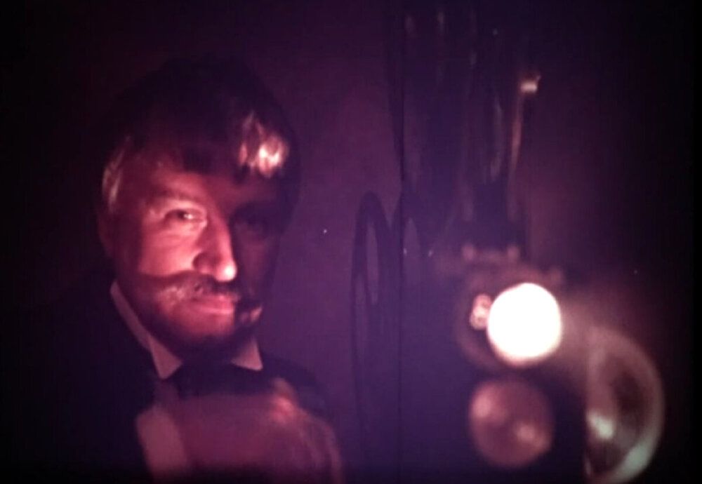 10. По свидетельству Масленникова, каждый день Никита Михалков выпивал на съёмочной площадке бутылку коньяка, не закусывая. Полагаю, что сцена погони за Сэлдоном одной бутылкой не ограничилась. Кстати, только благодаря какому-то секретному разговору с Михалковым позднее Масленников раз и навсегда бросил курить. Одним словом, экстрасенс!11. Борис Клюев, сыгравший старшего брата Холмса (старше на 7 лет), на самом деле был на 9 лет младше Василия Ливанова.12. Кто же следил за Генри Баскервилем в Лондоне? Джон Берримор? Джек Стэплтон? Судя по фотографии - ни тот и ни другой. Кто же этот человек? (вопрос риторический - конечно, следил Стэплтон, но снимался никак не Олег Янковский).