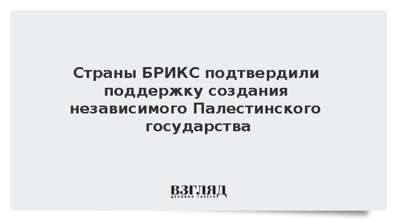 В итоговой декларации министерской встречи министры иностранных дел стран БРИКС подтвердили свою неизменную поддержку решения палестино-израильского конфликта путем создания двух независимых государств, передает РИА «Новости». В документе отмечается, что независимое и жизнеспособное Государство Палестина должно существовать рядом с Израилем в мире и безопасности, в границах 1967 года, включая сектор Газа и Западный берег, с Восточным Иерусалимом в качестве столицы.