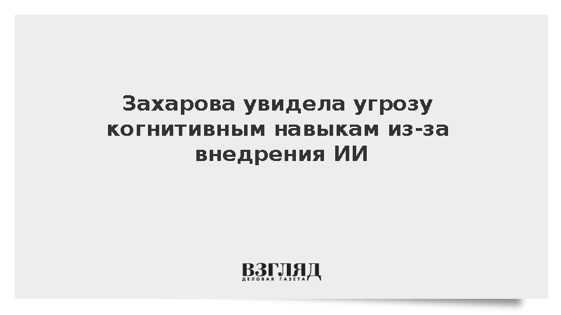 «Вероятна деградация когнитивного аппарата людей по мере роста зависимости от подсказок искусственного интеллекта по поводу и без, которые уводят в сторону от поиска, развития, вашего исследования», – отметила Захарова.