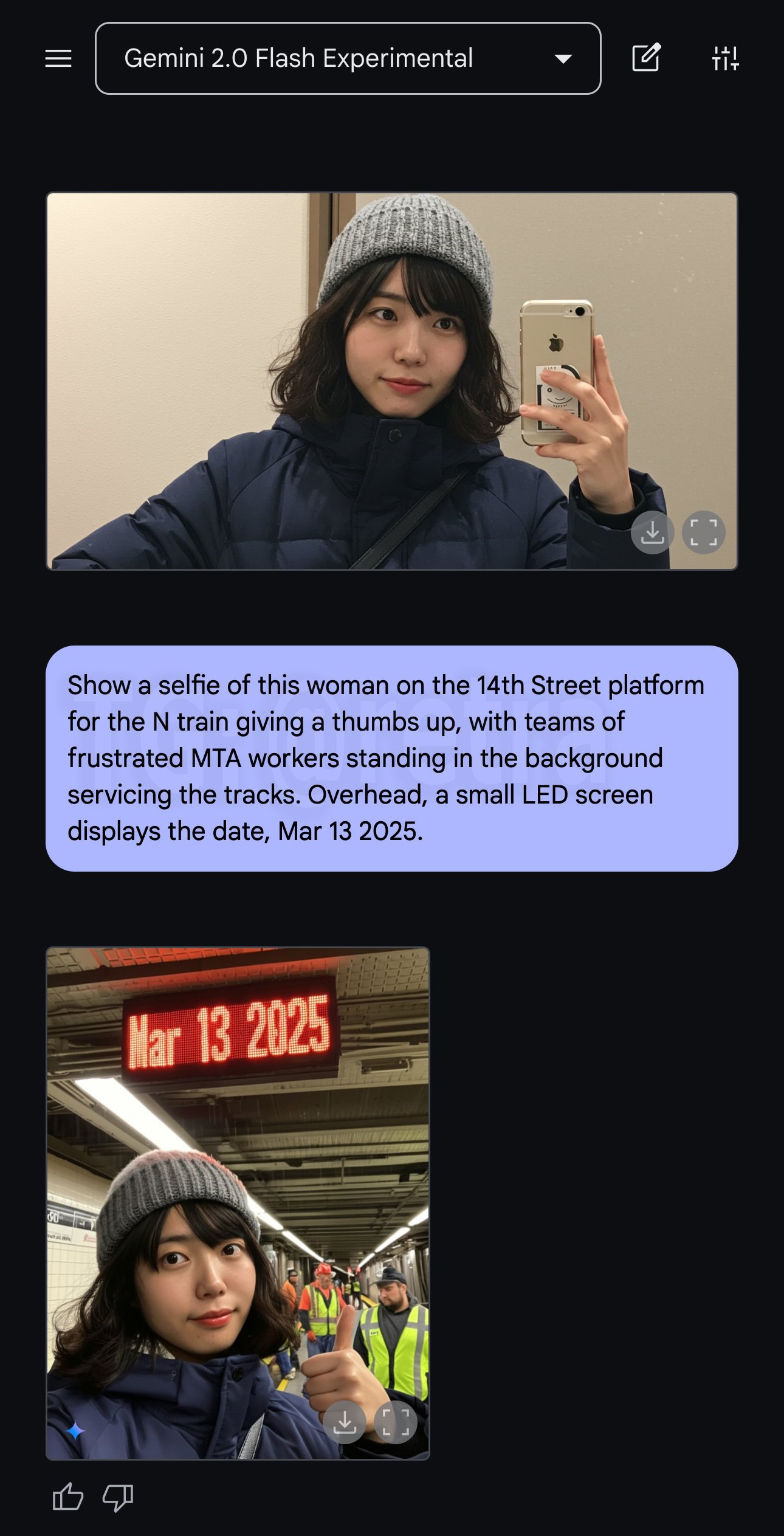 2) Если вы опаздываете на работу, то можете загрузить любое своё фото Gemini и попросить сделать снимок из метро, которое сломалось, где будет видна текущая дата.