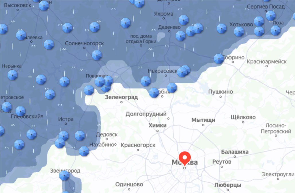 Сильный ливень уже накрыл север Подмосковья, скоро он доберётся до столицы.