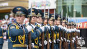 Заключительным аккордом мероприятия стал традиционный вальс и красочные показательные выступления роты почетного караула, ансамбля барабанщиц и духового оркестра Академии.