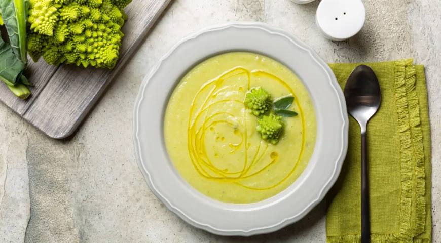 5. Снова доведите суп до кипения. Подавайте горячим. По желанию сбрызните маслом, украсьте шалфеем и сваренной отдельно капустой.