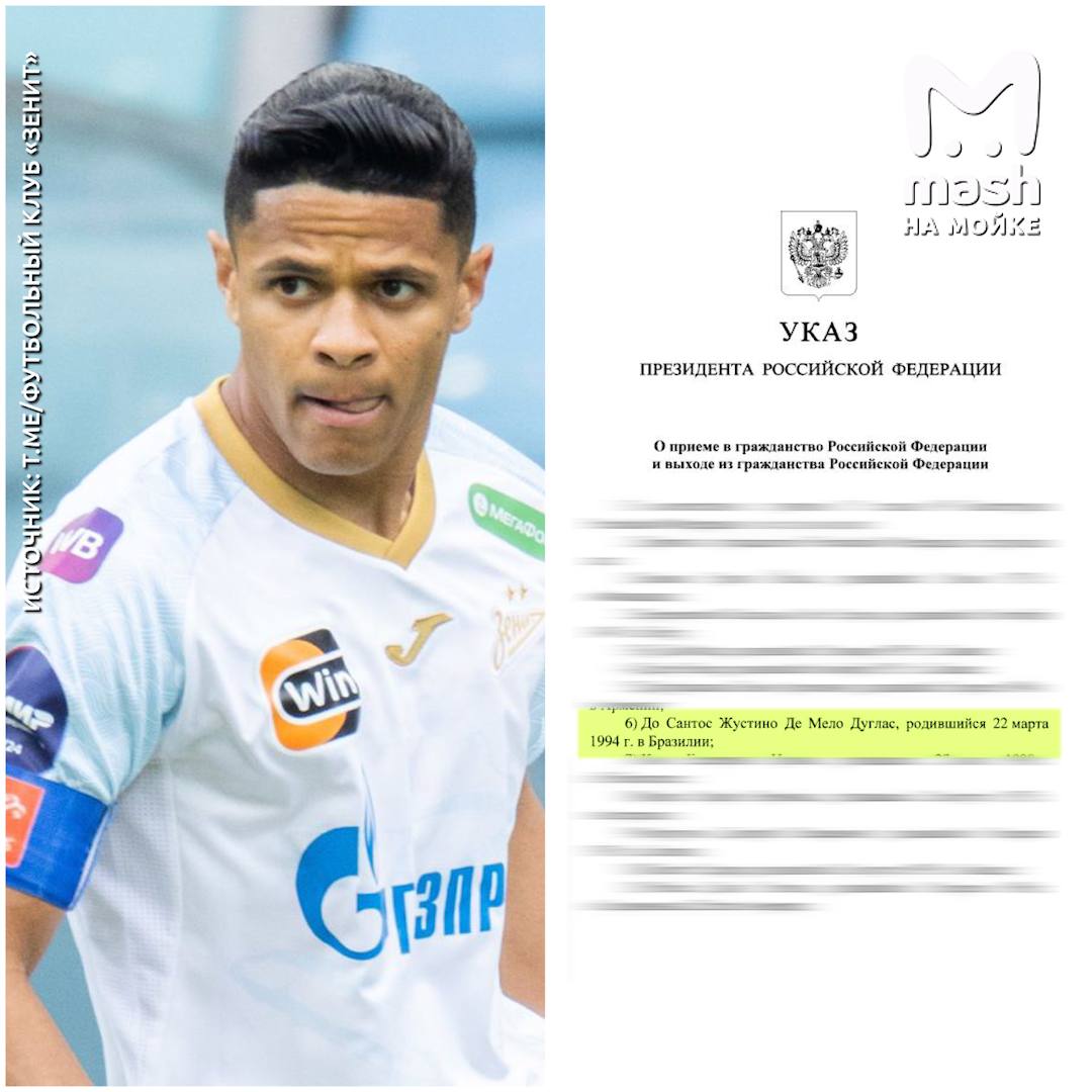 Бразильский футболист "Зенита" Дуглас Сантос получил российское гражданство — свежим указом президента Владимира Путина.