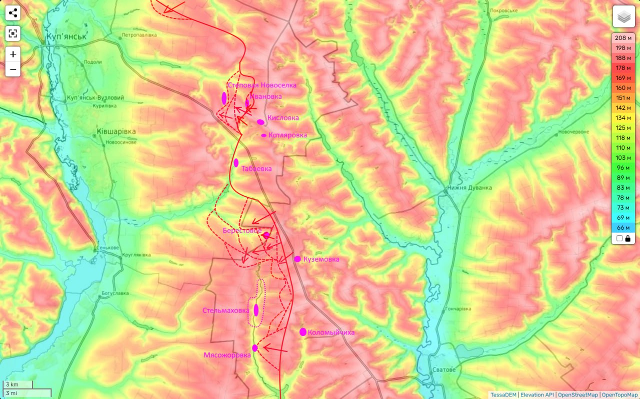 Вчера были успехи северо-восточнее и юго-восточнее села. Но ключевым здесь является северное направлении (со стороны Берестового). Именно оно таит для ВСУ наибольшую опасность, и именно здесь, к сожалению, пока мы не можем к Стельмаховке подойти.