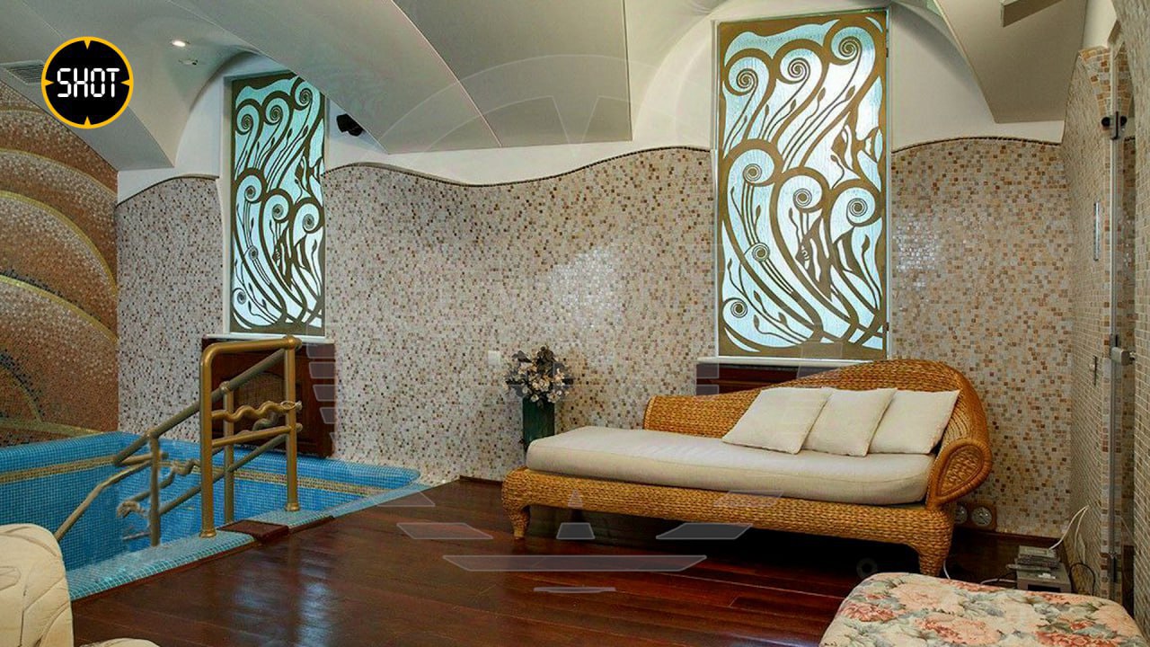 Внутри особняка дорогая дизайнерская мебель, оформление в классическом стиле, лестницы и двери из ценных пород дуба, кинотеатр на цокольном этаже, мансарда с бильярдом, шесть спален, спа, хаммам, бассейн и многое другое. Дом не нуждается в ремонте, ведь его реконструировали в 2020 году.