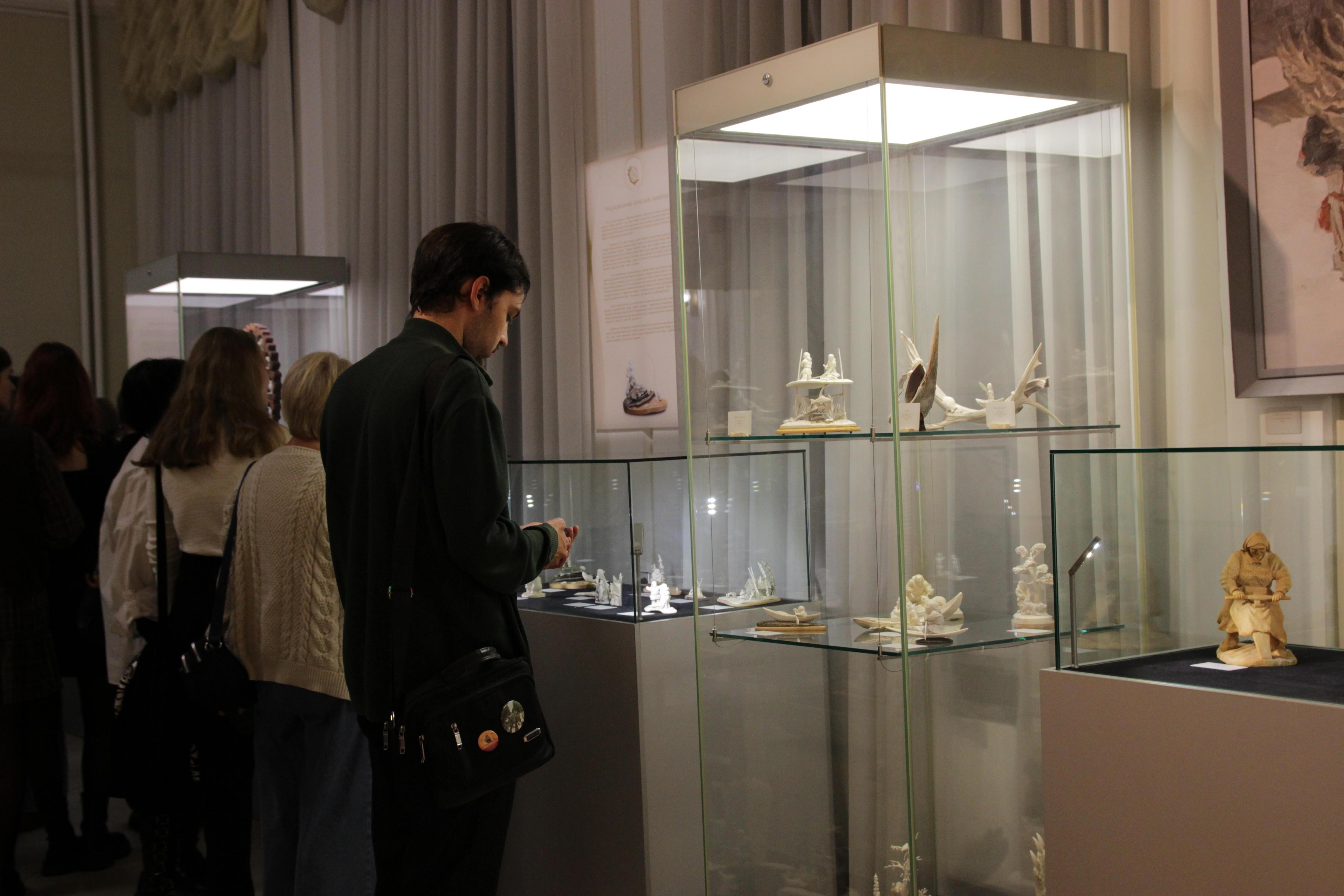 На выставке представлено больше 130 предметов: работы резчиков по кости, традиционная одежда, скульптурные композиции из дерева. Создавать атмосферу помогали картины из личной коллекции художника-живописца Татьяны Кипко.