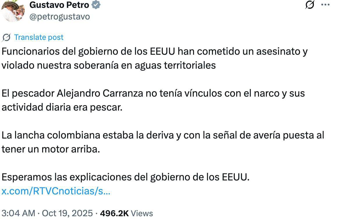 Выражаем протест против нападения на мирного колумбийского рыбака.