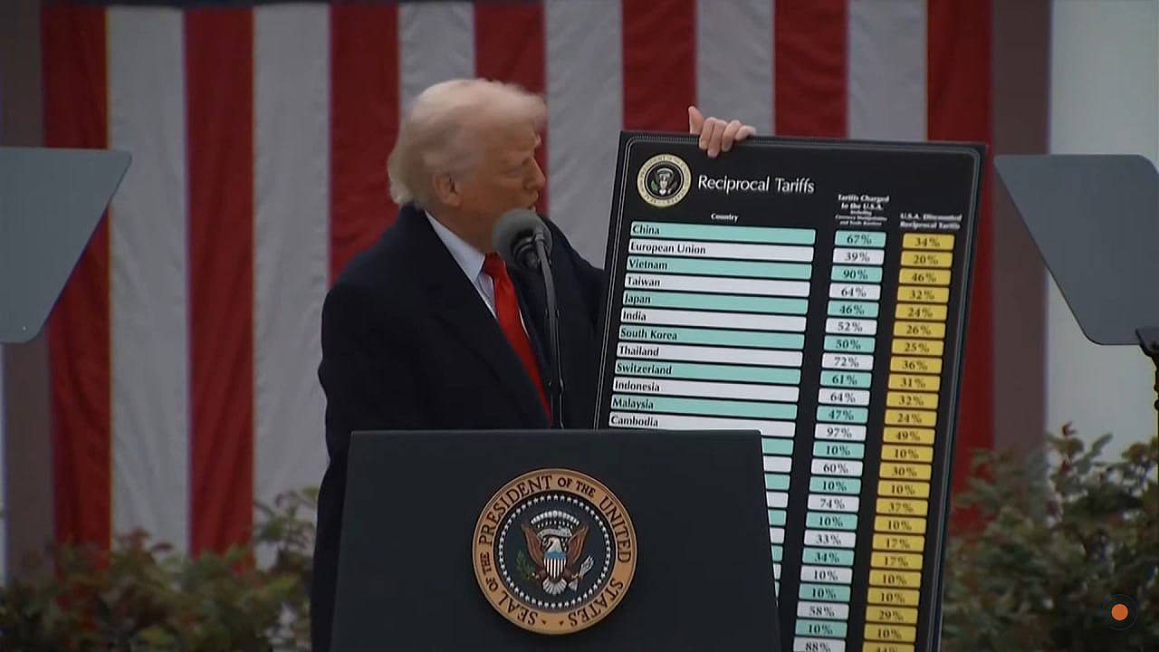 Трамп показывает какие тарифы у стран для США и какие у США для этих стран.