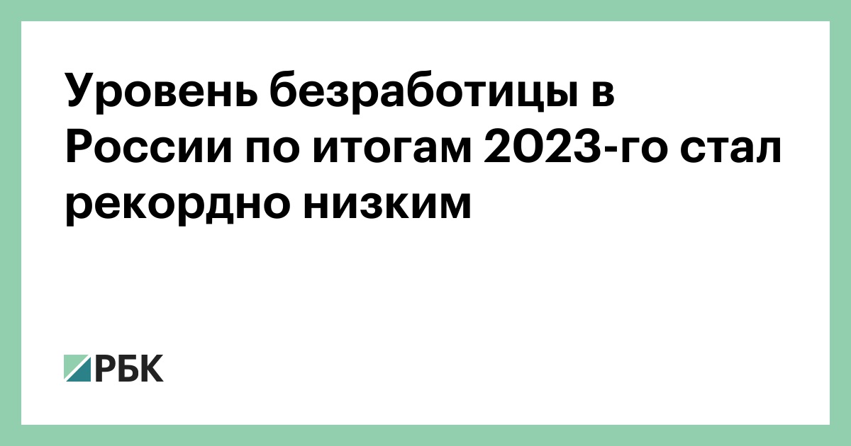 Среднегодовой уровень безработицы в России по итогам 2023-го составил 3,2%, что является самым низким показателем с начала наблюдения (1992 года), сообщил генеральный директор ВНИИ труда Дмитрий Платыгин в комментарии РБК.