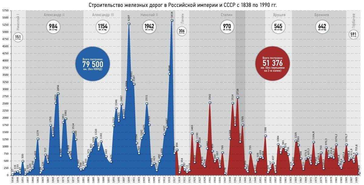 В РИ дорог построили больше, причём самые высокие темпы были при Николае Втором. В 2 раза выше, чем в СССР.