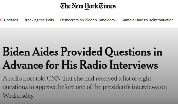 New York Times: помощники Байдена заранее подготовили вопросы для его интервью.