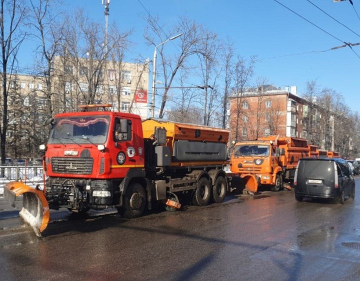 На уборку города выйдет около 100 единиц техники от подрядной организации «Спецавтохозяйство» и МКУ «Сервисный центр г. Тулы», включая 36 комбинированных дорожных машин.