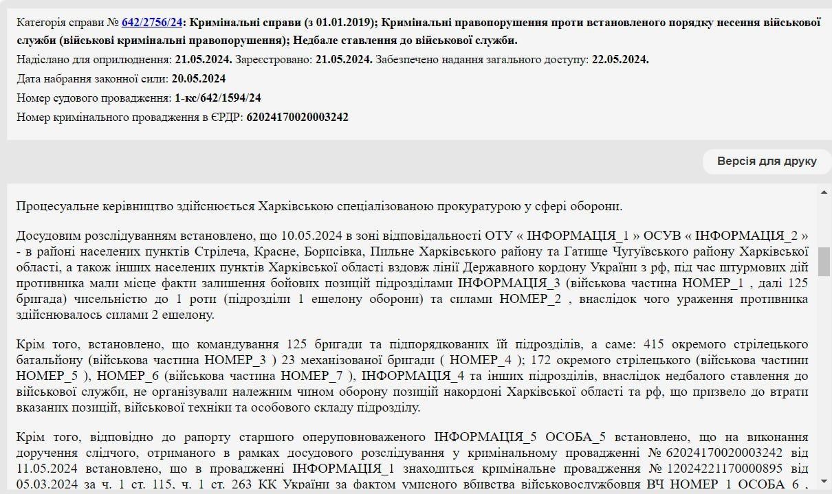 ❗️Следствие утверждает, что командование 125 бригады и подчиненные ей подразделения (415 осб, 23 механизированная бригада, 172 осб) не организовали должным образом оборону позиций на границе Харьковской области и РФ, что привело к потере территорий, военной техники и личного состава.