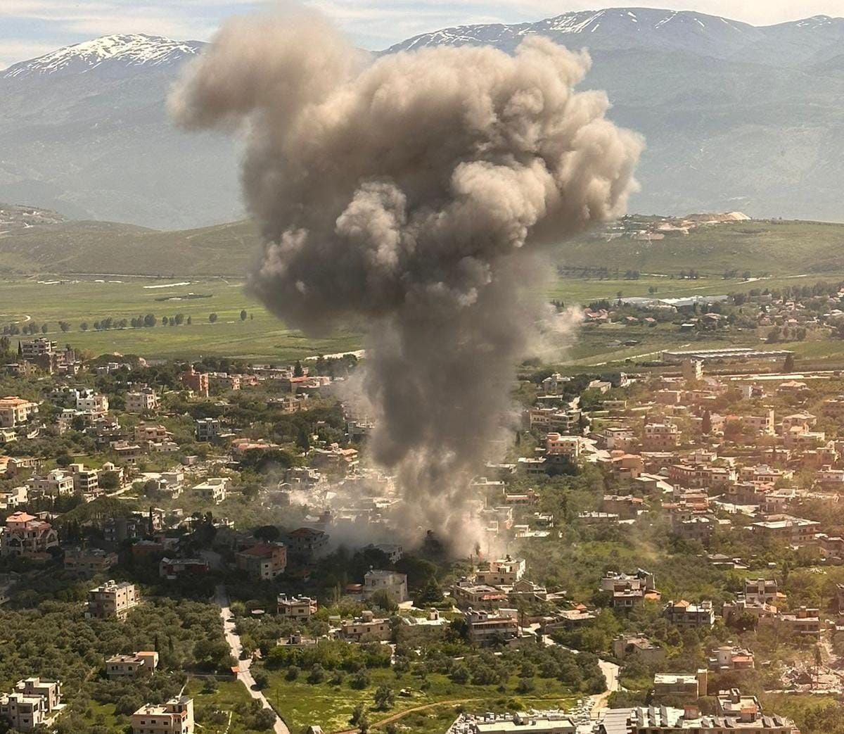 На фото израильские авиаудары по ливанским деревням Кафр-Кила и Айта-Аш-Шаб.