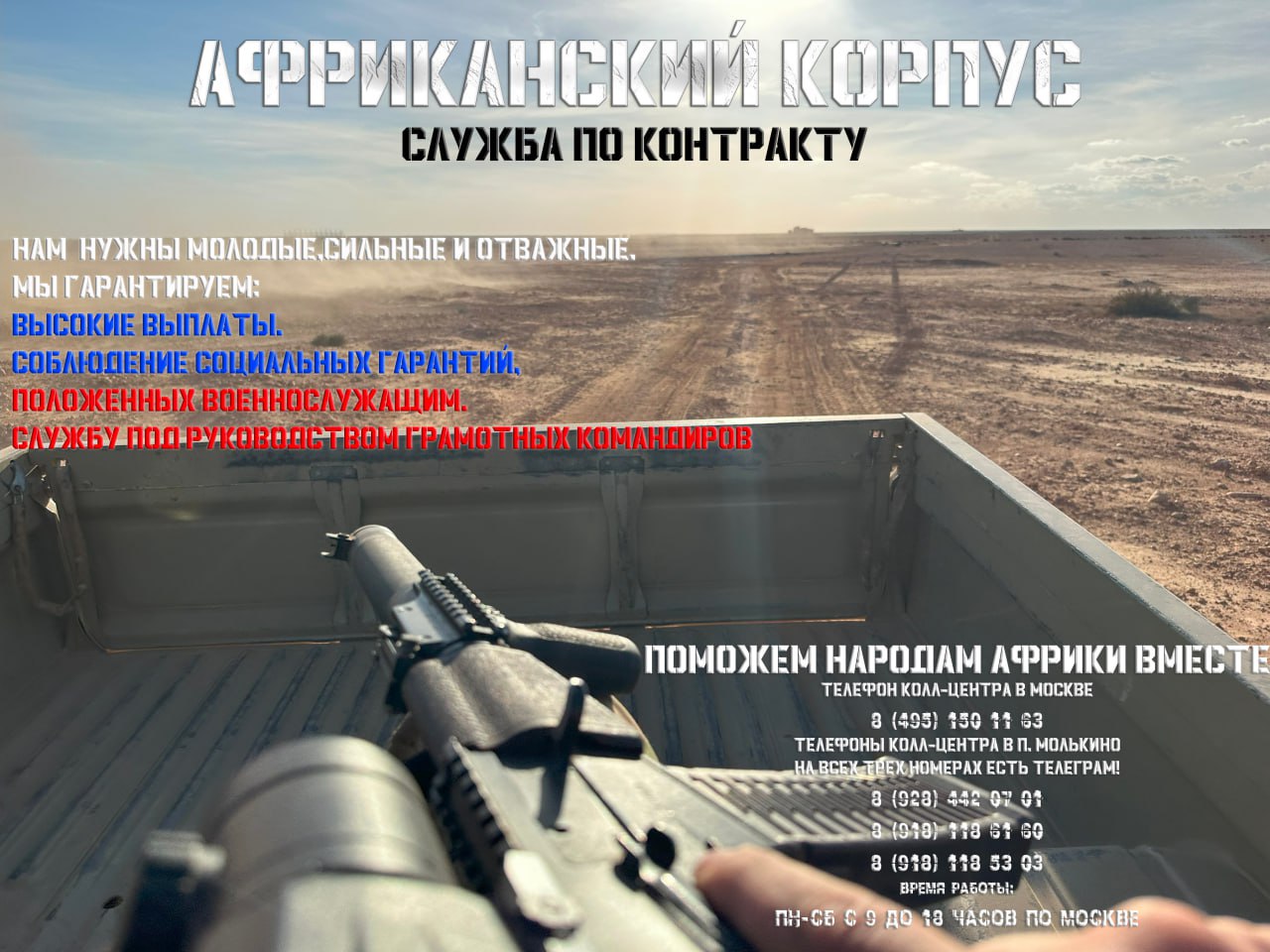 Африканский Корпус Министерства обороны Российской Федерации продолжает набор военнослужащих по контракту.