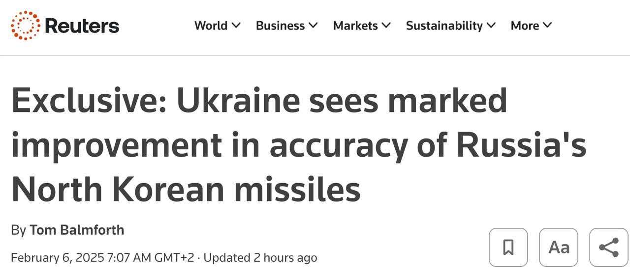 Северокорейские баллистические ракеты, выпущенные Россией по Украине с конца декабря, стали гораздо точнее, сообщает Reuters со ссылкой на высокопоставленные украинские источники.