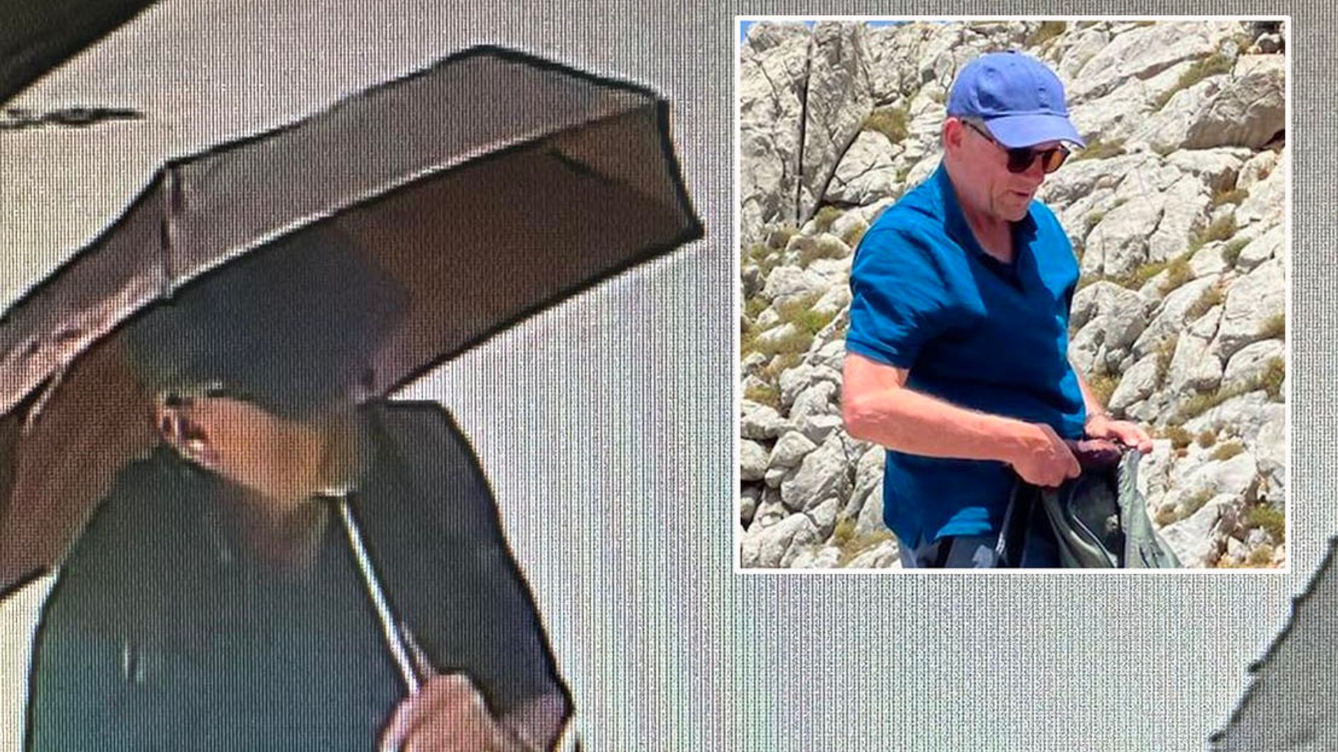CCTV images have emerged showing the 67-year-old at 2pm on Wednesday, half an hour after he left Saint Nikolas Beach on the Greek island of Symi.