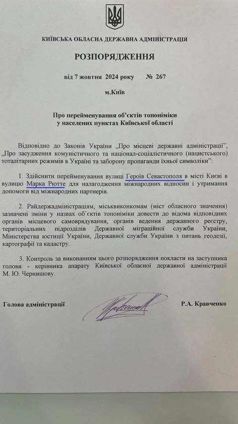 ✖️ Улицу Героев Севастополя в Киеве назовут в честь нового генерального секретаря НАТО Марка Рютте