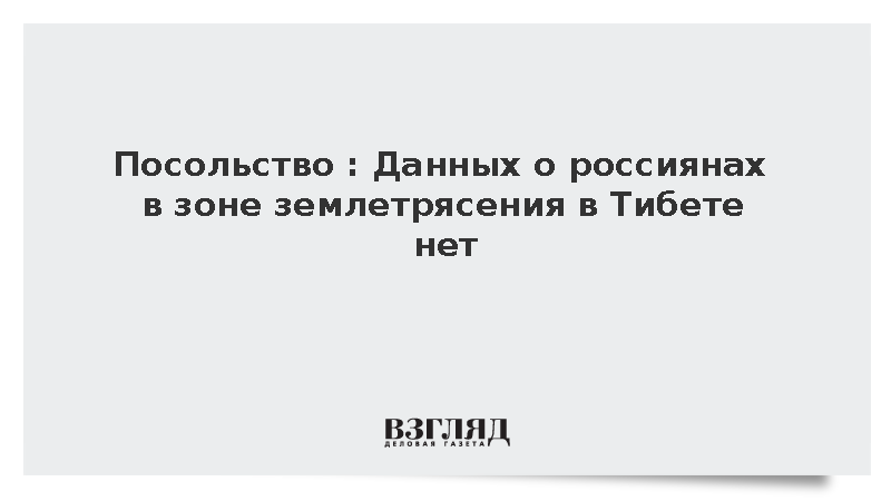 Как сообщает РИА Новости, посольство Российской Федерации в Китае заявило об отсутствии данных о нахождении российских граждан в зоне бедствия после землетрясения в Тибетском автономном районе. Землетрясение произошло 7 января в 9.05 по местному времени в уезде Тингри округа Шигадзе.