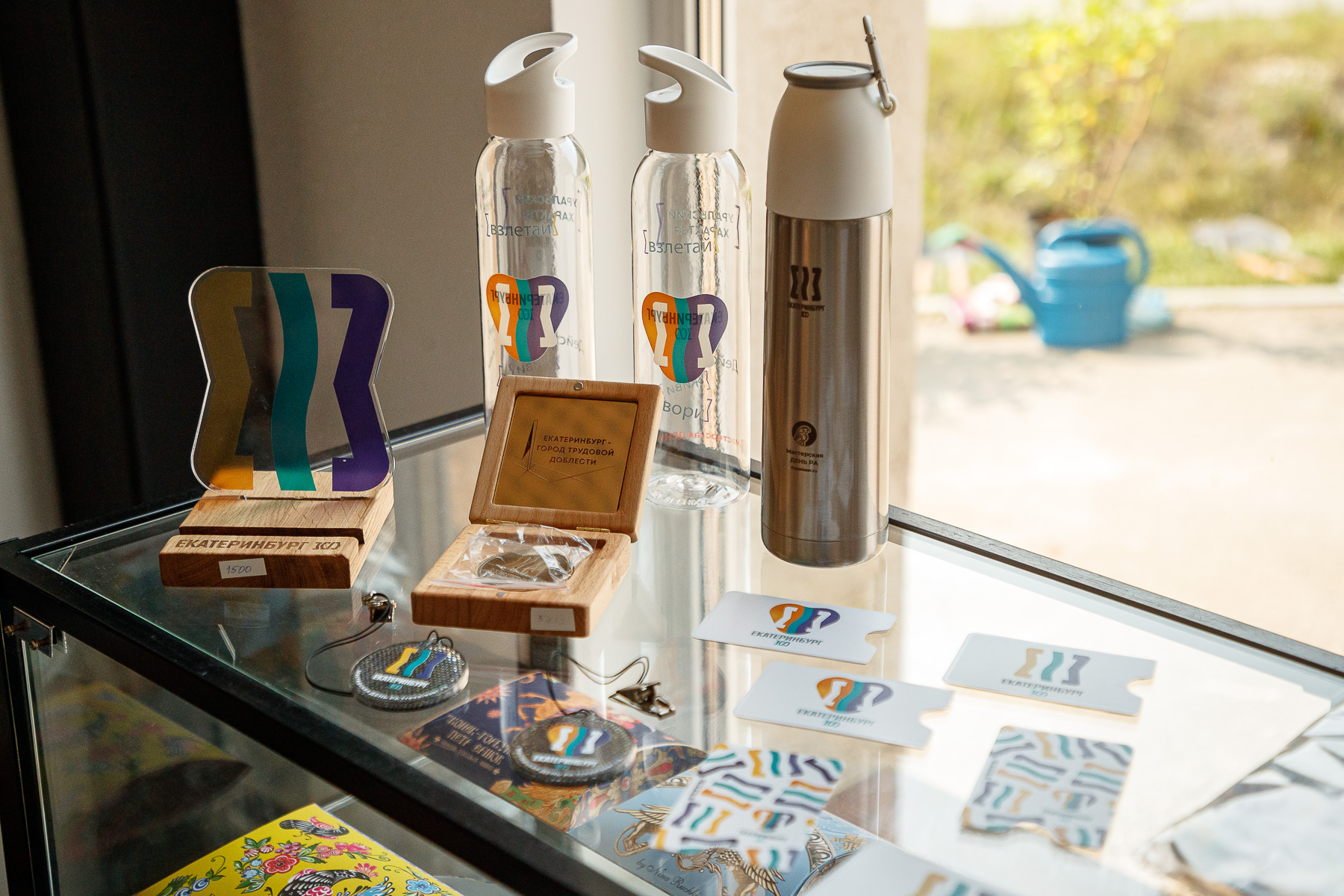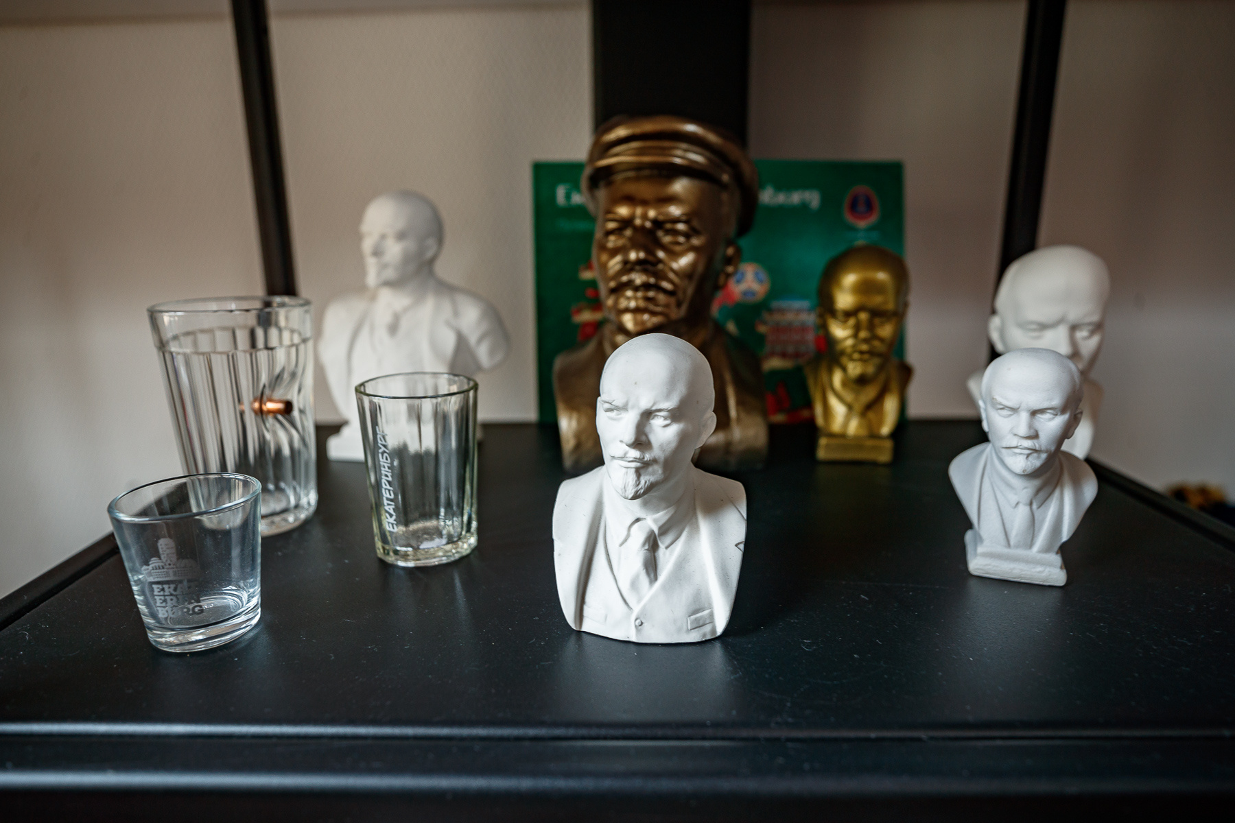 В продаже есть стаканы с надписью «Екатеринбург» и — неожиданно — маленькие бюсты Ленина