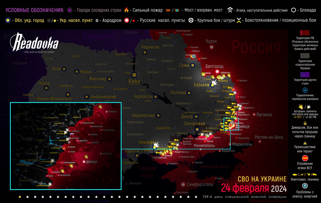 Карта военных действий и ситуация на фронтах вечером 24 февраля