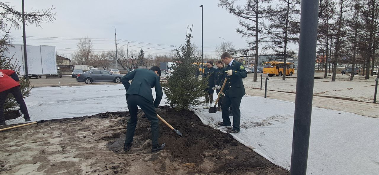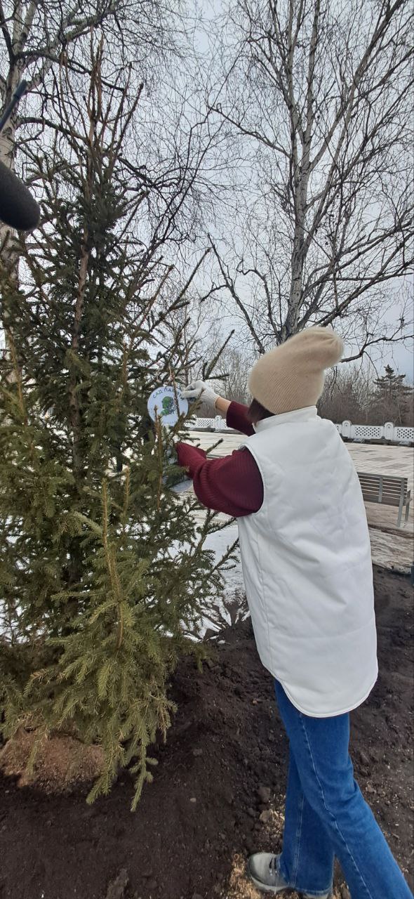 Первая акция прошла в Красноярске в минувшую пятницу, 21 марта. Молодые ели в память об участниках Великой Отечественной войны на площади Победы.
