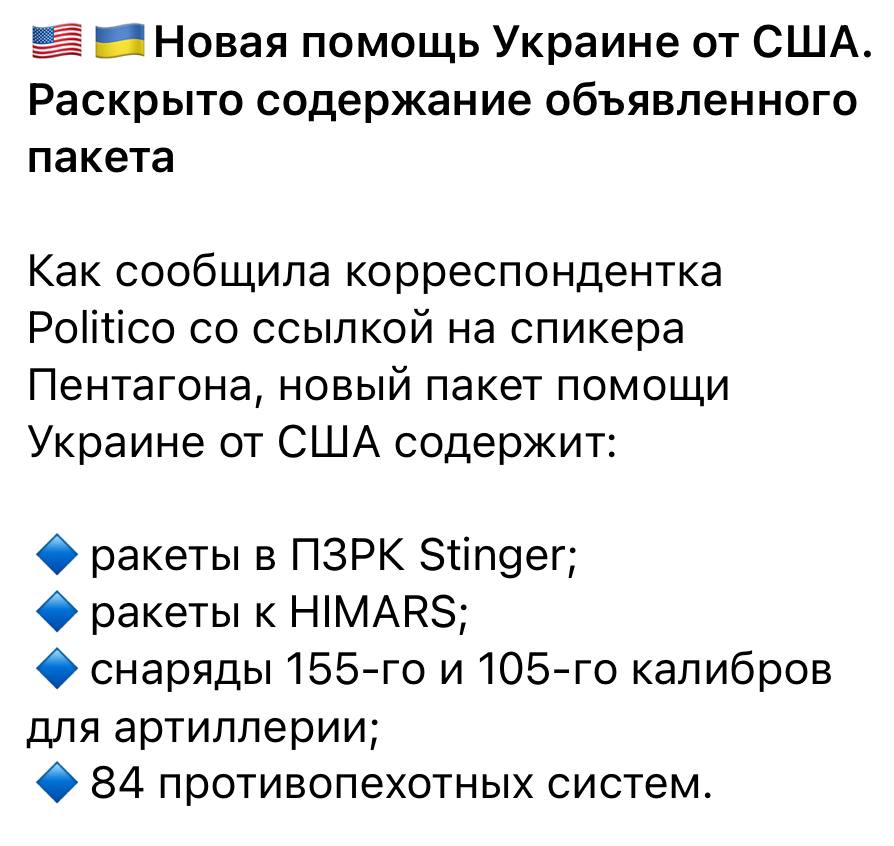 Судя по тому, что ноющий об отсутствии денег Пентагон всё же нашёл экстренно $300 млн для Украины, ситуация со снарядами и ракетами в ВСУ хреновая.