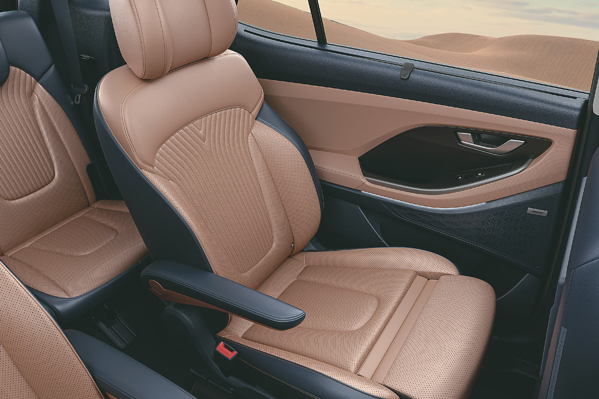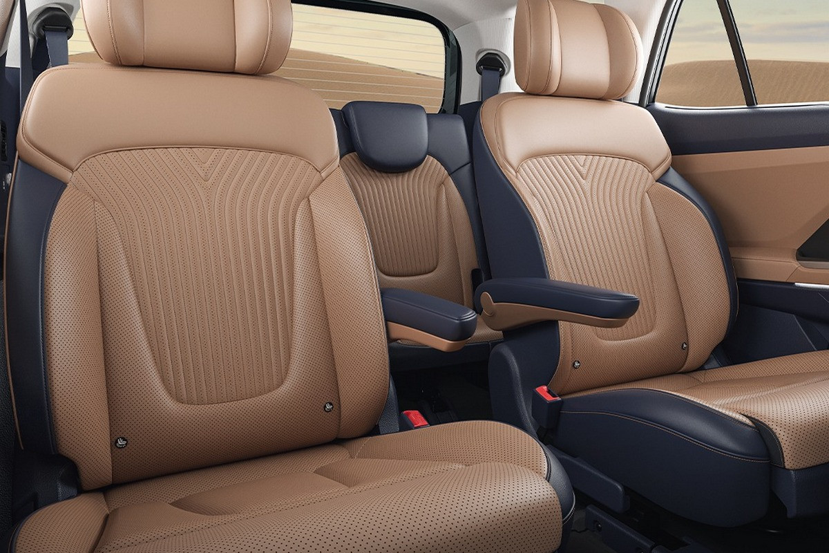 Во втором ряду шестиместного Hyundai Alcazar установили новые, более комфортные кресла с увеличенными подголовниками и отдельными подлокотниками (у дореформенного кроссовера между сиденьями расположена общая «тумба»). Площадка для беспроводной зарядки смартфонов задних пассажиров и пара USB-разъемов отныне размещены в торце центрального тоннеля (прежде были в той самой «тумбе»). Кроме того, у шестиместного Альказара вентиляция теперь имеется не только у передних сидений, но и у кресел, расположенных посередине.