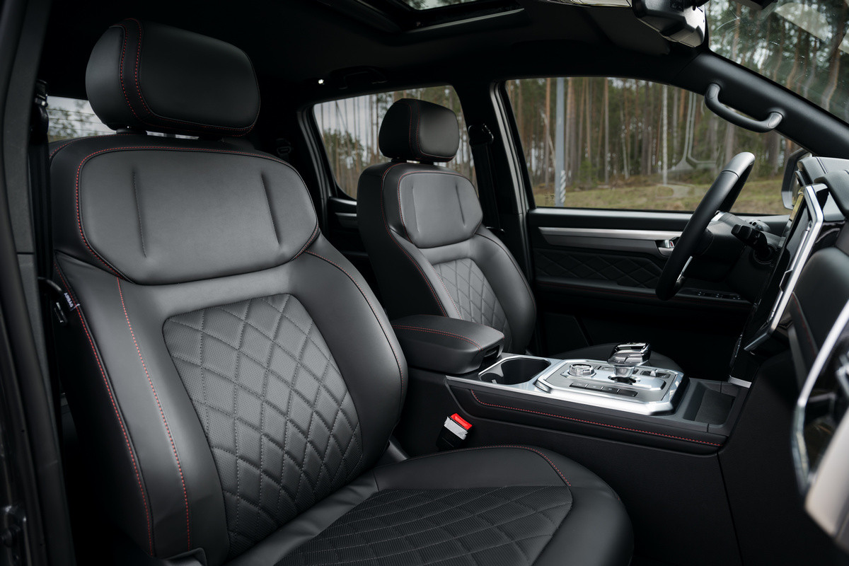 Пикап предложен в единственной комплектации Luxury. В списке оборудования значатся: светодиодная оптика, люк в крыше, электропривод и обогрев наружных зеркал (плюс автоматическое складывание), «кожаный» салон, регулировка руля по высоте, виртуальная приборка (7 дюймов), мультимедиа-система с планшетом диагональю 10,4 дюйма, климат-контроль, подогрев передних кресел, беспроводная зарядка для смартфона, система бесключевого доступа и кнопка запуска мотора, датчик дождя, передний и задний парктроники, передние и боковые подушки безопасности, шторки безопасности, камеры кругового обзора, круиз-контроль.