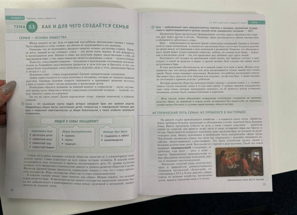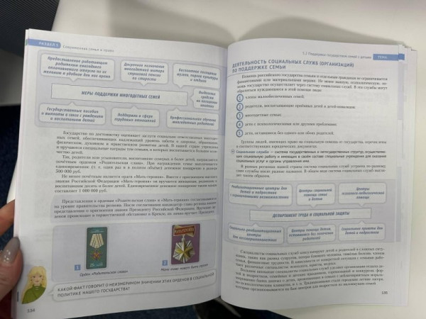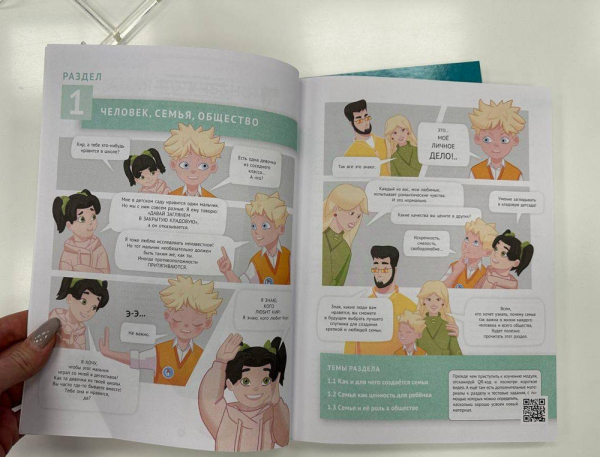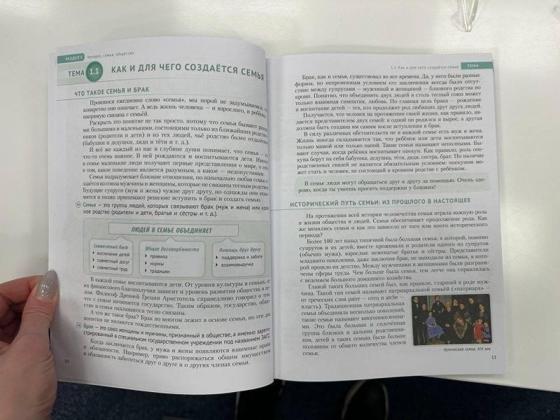 А соавтор пособия, Ксения Мосунова, рассказала, что в учебнике подчеркнули тему традиционных отношений и семьи:Мы раскрывали, почему мама - это мама, а папа - это папа. Почему нет родителя-один и родителя-два.
