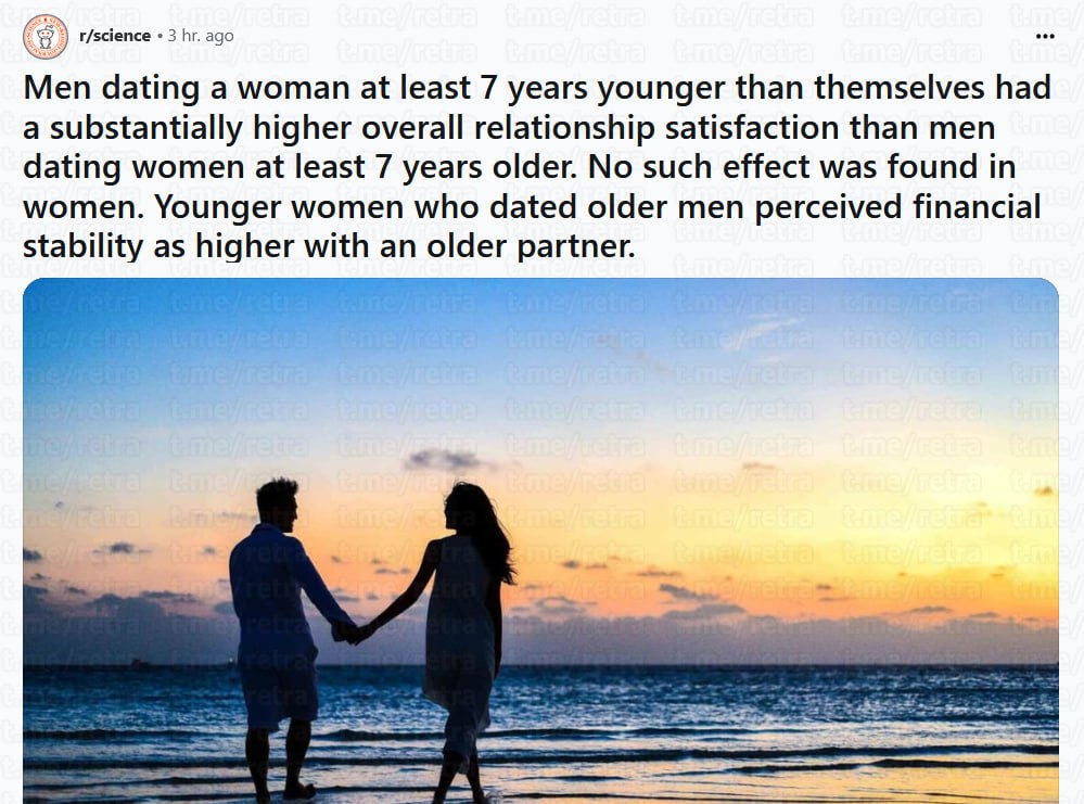 Согласно результатам, мужчины были значительно более удовлетворены отношениями, если их партнёр младше, особенно в плане эмоциональной и сексуальной близости. При этом женщины не показали разницы: они были одинаково удовлетворены как со старшими, так и с младшими партнёрами.