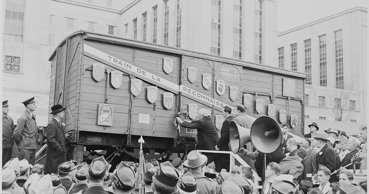 Le 10 janvier 1949, 49 wagons couverts quittent la gare parisienne des Batignolles pour celle du Havre. Ils sont ensuite chargés à bord de l’imposant navire Le Magellan, construit à Saint-Nazaire par les Allemands pendant la Seconde Guerre mondiale. L’équipage du bateau largue les amarres le 14 janvier pour s’éloigner petit à petit du port normand. Une vingtaine de jours plus tard, New York accueille Le Magellan, qui arbore sur ses flans l’immense inscription «MERCI AMERICA». Le 2 février 1949, plus de 200.000 personnes sont réunies pour assister au débarquement du «Train de la reconnaissance française au peuple américain», selon son nom officiel, dont chaque wagon, rempli de cadeaux, rejoindra ensuite l’État américain qui lui est affecté.
