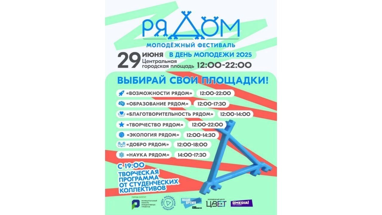 В 12:00 на Центральной площади начнется молодежный фестиваль «Рядом». Горожане смогут присоединиться к нескольким тематическим площадкам, посвященным вопросам экологии, благотворительности, науки, образованию и другим сферам. А в 19:00 сургутян ждет творческая программа от студенческих коллективов.