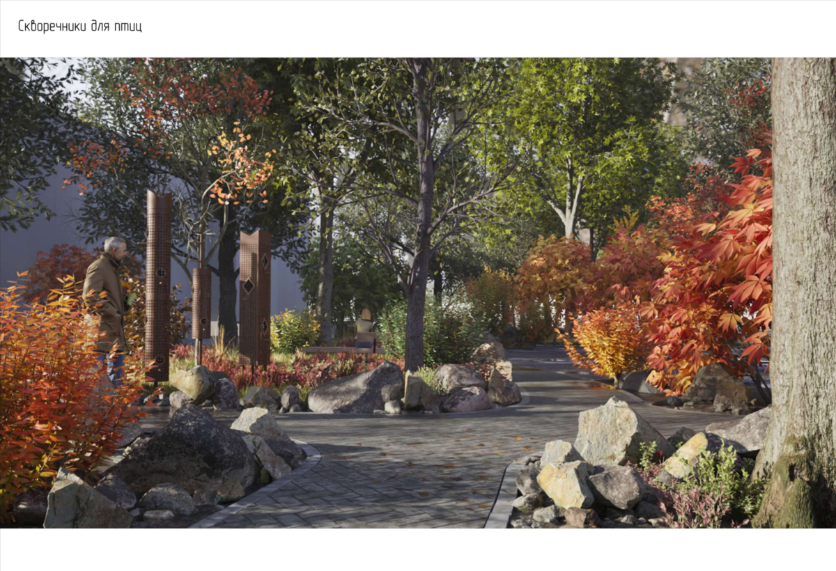 В сквере Кутузова подрядчику нужно будет сделать новые пешеходные дорожки, дренаж, освещение, видеонаблюдение и озеленение. Согласно проектной документации, подготовленной архитектурным бюро «ЭфПять», здесь будет три зоны – прогулочная зона, зона детских площадок и зона отдыха. На территории появятся декоративные валуны и скворечники, навес с качелями, игровой комплекс с горками, гамак, скамейки. В общей сложности будет высажено более 300 деревьев и кустарников, в том числе клёны, яблони и сосны.