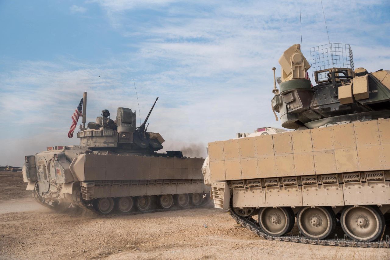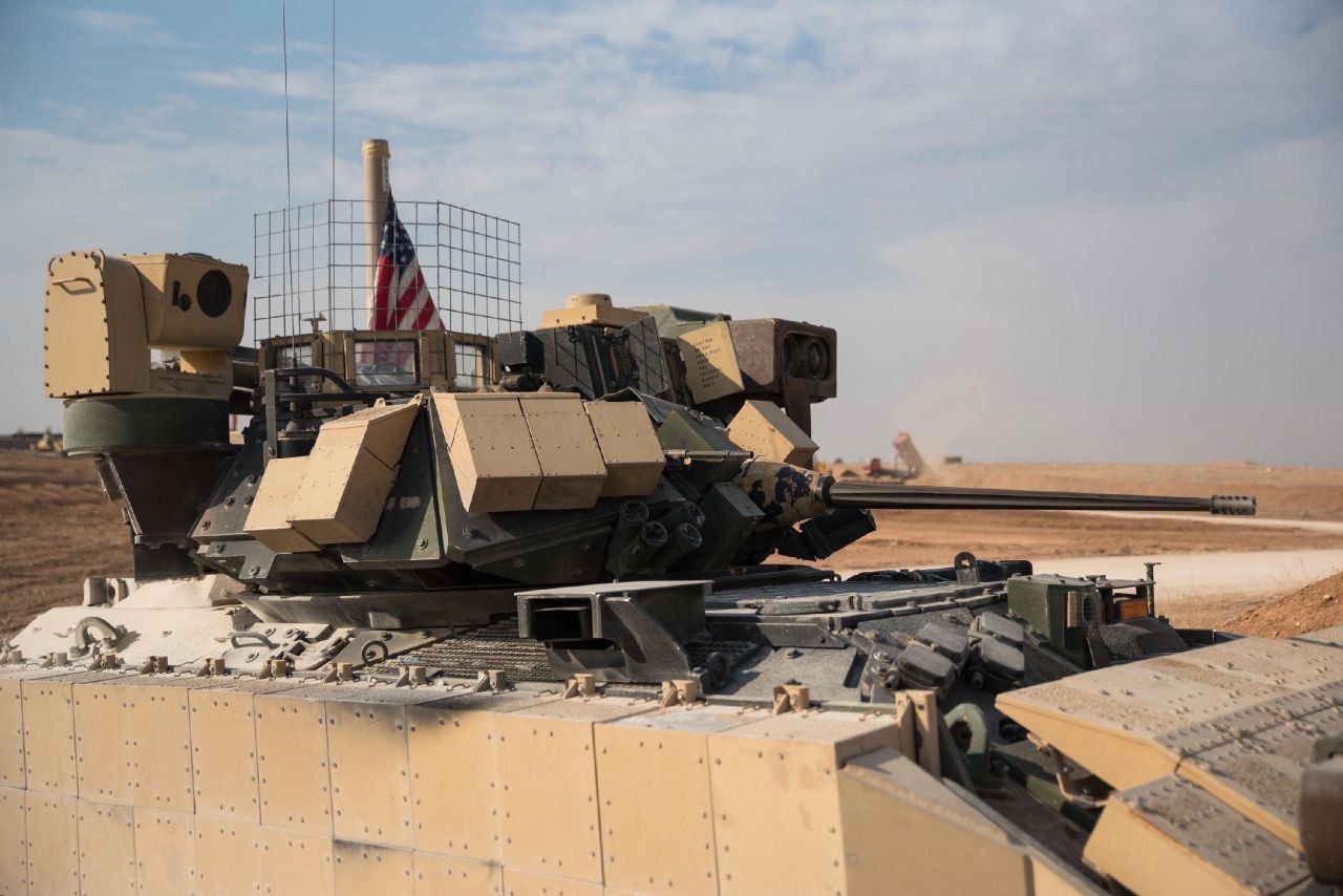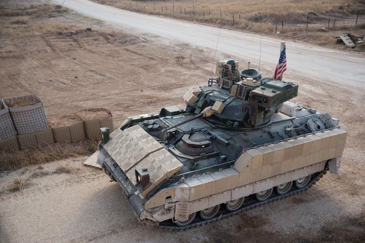 На севере Сирии замечены БМП M2A2 Bradley американской армии с металлической сеткой, которой прикрыто место командира.