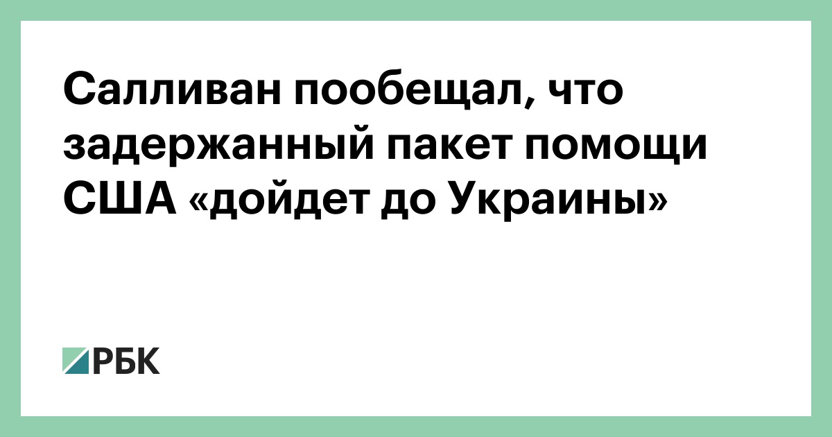 Советник по национальной безопасности США Джейк Салливан во время поездки в Киев заявил, что пакет помощи, который конгресс никак не согласует, «дойдет до Украины», сообщает Reuters.
