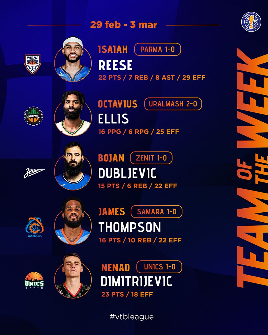 По итогам этого уикенда Единая лига ВТБ объявила символическую пятерку недели. В неё вошли: